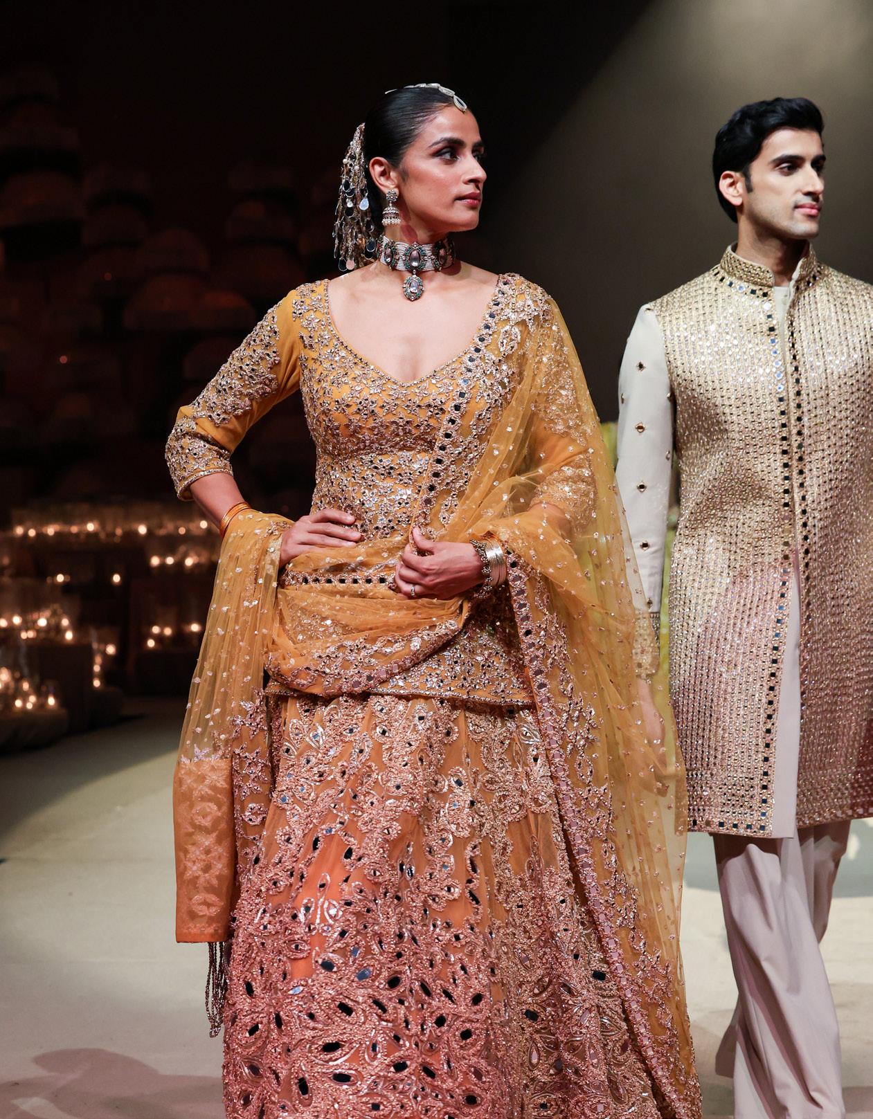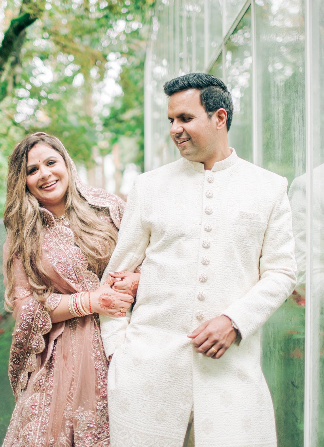 Choosing my wedding attire was such a special experience. I wanted something that blended my personal style with our cultural heritage, so I tried on countless outfits before falling in love with a stunning lehenga that was a shade of pink. The intricate embroidery, vibrant colors, and the beautiful story behind the piece made me feel like a princess. I also helped Vijay select his outfit to ensure we complemented each other perfectly—he went for a classic achkan that was elegant, timeless, and totally his style. It was all about balancing tradition with a modern touch for both of us.