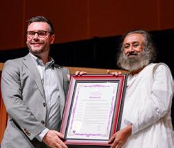 Vancouver experienced The Journey Within — a session of meditation, wisdom, and joy with Gurudev Sri Sri Ravi Shankar, the globally renowned humanitarian and spiritual leader. From timeless insights on life and laughter to the stillness of deep meditation, Gurudev guided over 2200+ attendees to reconnect with the peace and joy that already lives within. Vancouver City Councillor and Acting Deputy Mayor Peter Meizner honored Gurudev with a formal proclamation recognizing the significant contributions of the Art of Living Foundation. The proclamation designates October 18 as Sri Sri Ravi Shankar Day in Vancouver.