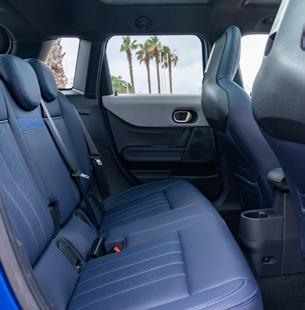 The dash upholstery is made from an interesting recycled polyester fabric containing illuminated contrast graphic patterns knit in. Although most physical switches and buttons have been transitioned to the virtual kind, the ones remaining—especially the turn signal stalk—possess a nice, click-y tactile feel. The center console could use some additional storage space, though.