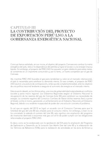 CAPITULO III LA CONTRIBUCIÓN DEL PROYECTO DE EXPORTACIÓN PERÚ LNG A LA GOBERNANZA ENERGÉTICA NACIONAL