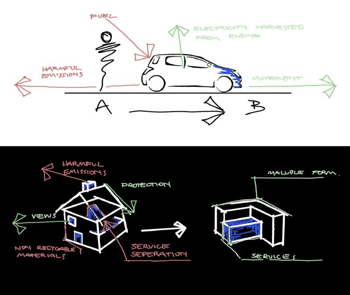 Housing needs to change to an ecofriendlier form. believe this can be achieved by integrate modern innovation just like the car industry has. I also believe the sporadic placement of services throughout our houses causes inefficiency of various services in our houses.