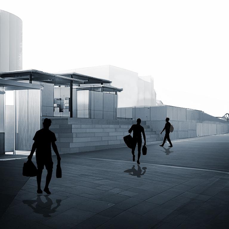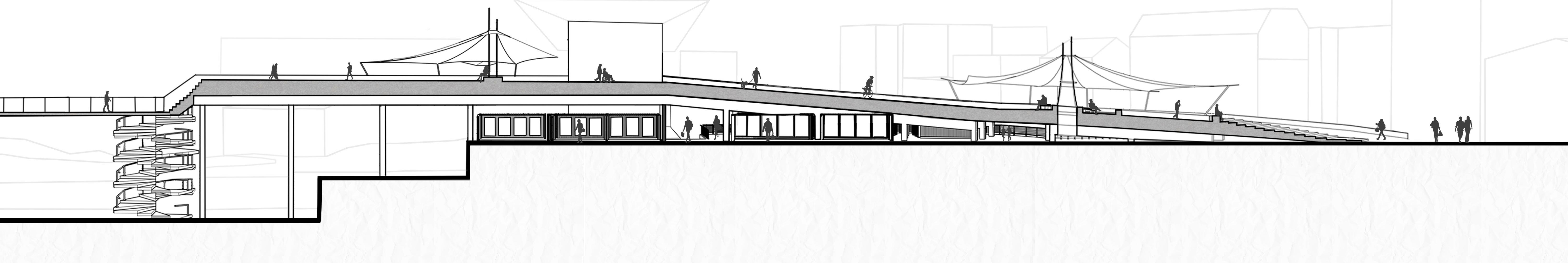 Utilising the south quay’s rise/ fall to make it possible to create a platform and shower / changing rooms.