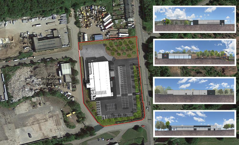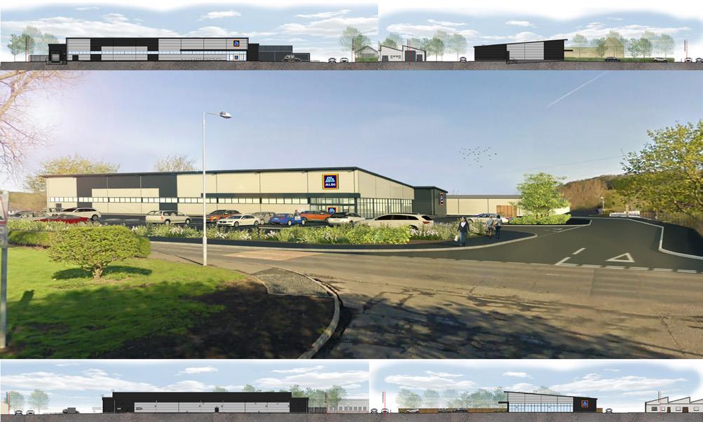 + I used Revit to virtually build this Aldi store. Utilising the Revit model and Adobe software, I completed these realistic elevations and site plan.
