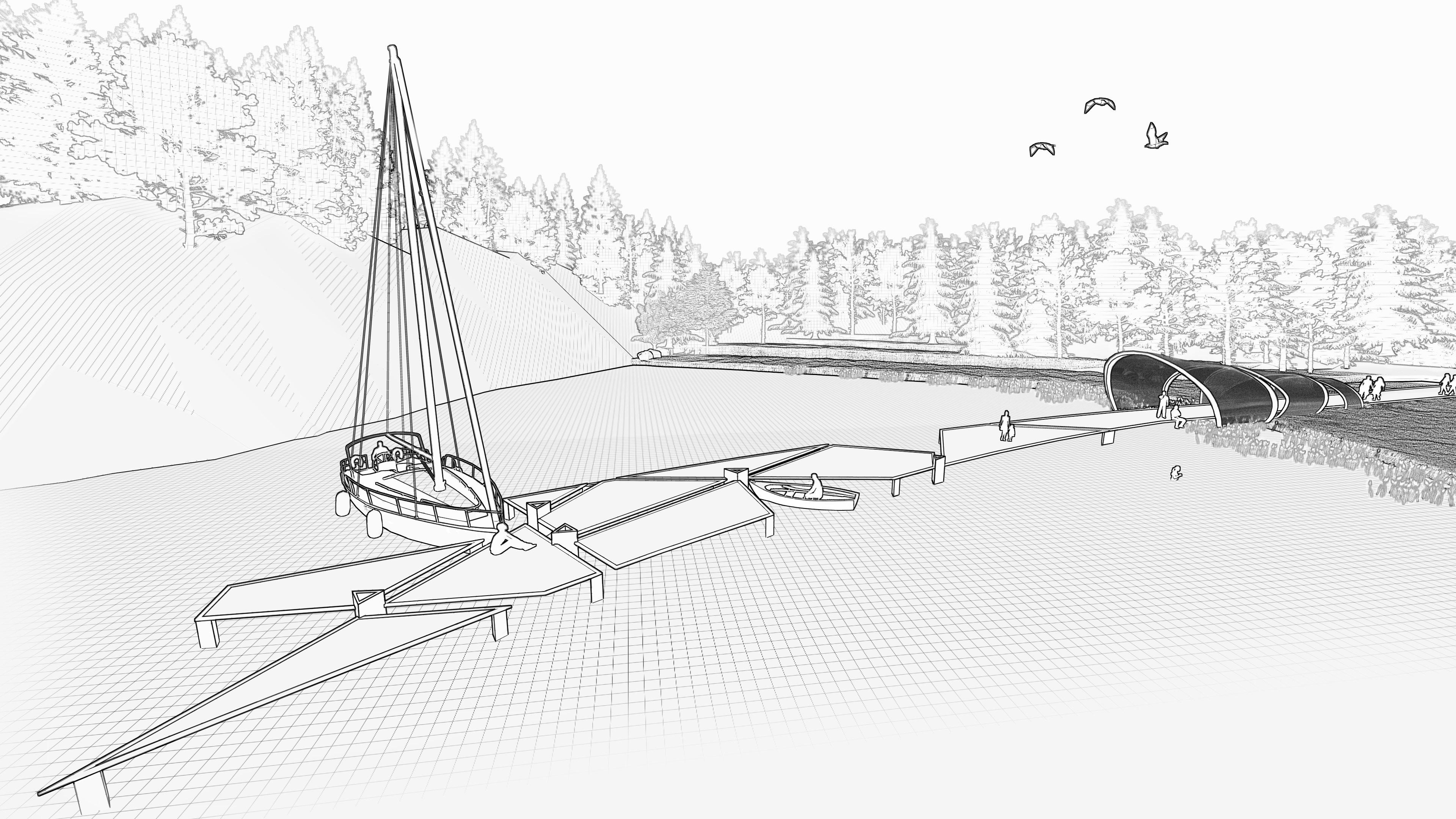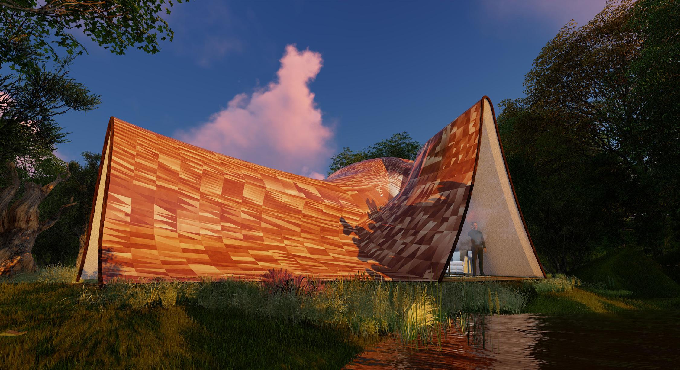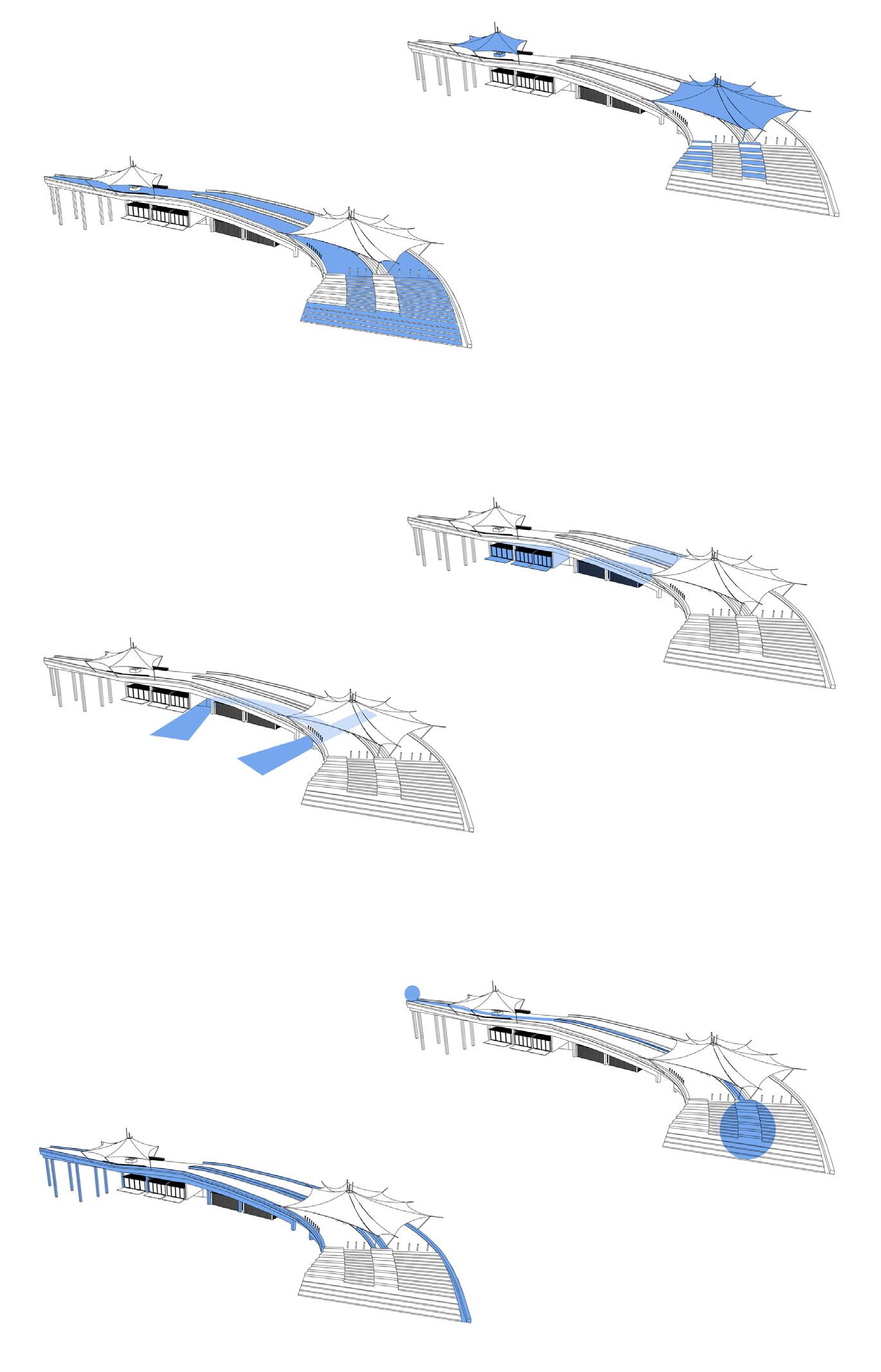 The project is conceived as an amalgamation of escaping from technology, embracing the intersection of nature, recreational, environmental, and social activities. The form simply manifests the complex nature and bespoke contours of the site into a built form. Resulting in a chain reaction of easily duplicated helpful build. “ “