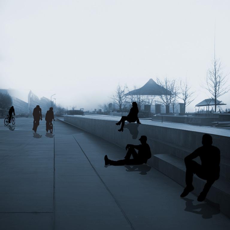 Located the city side of the site and this social hub