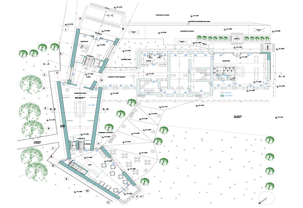 I wanted to create a new and vibrant building that can not only act as a contemporary gallery for art and sculpture. I want to create a Gallery that will juxtapose the natural setting and rigid form of the existing Hunt Museum. I wanted to separate areas so the spaces can be used simultaneously for different events.