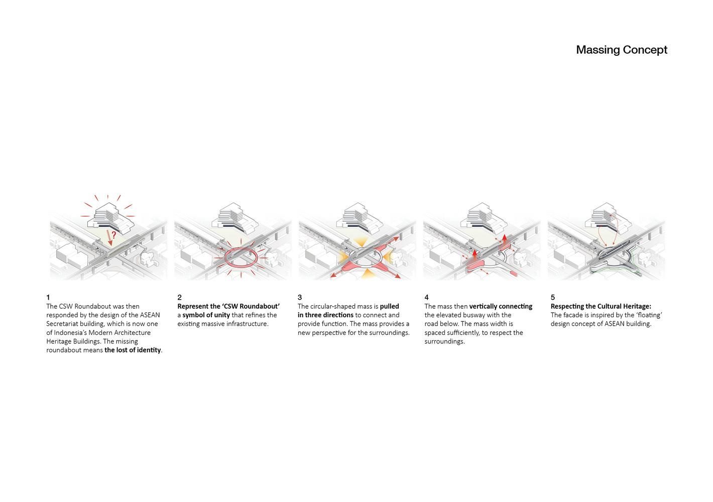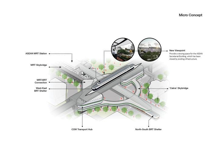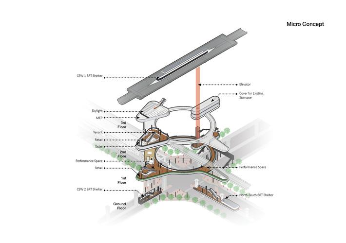 Bangunan ini menggabungkan antar Jalur MRT, Jalur Busway dan Jalur Pedestrian menjadi satu area