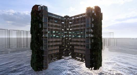 The proposed architecture suggests a new way of life where in the near future where sea level rises exponentially due to global warming. The architecture’s purpose to is make use of exising buildings, repurposing them to help them better fight the harsh elements. This development takes inspiration from octopuses which are able to thrive on both land and sea by using existing materials found aroud them. As a result, being able to survive the dangerous enviroment.