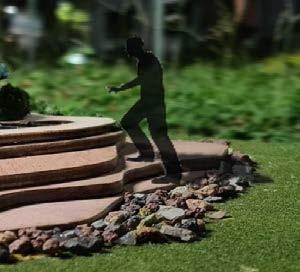 The terrain difference also serves as steps to get to the highest peak of the installation