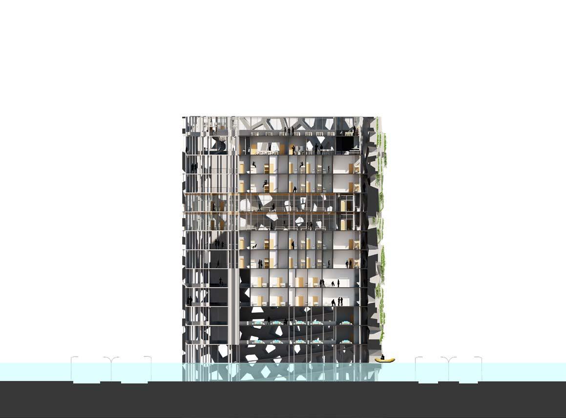 Filtering the facade would be where my biomimicry comes into play. The pattern present in my facade not only acts as a sun-shading device but also as a wave breaker to help mitigate the harshness of the waves towards the surviving building.