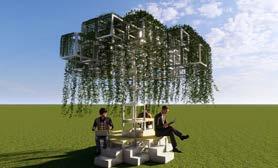 The space allows the public to have some alone time as the seats are designed to face away from others. This area replicates a tree with a green roof that will be filled with fruits and plants.