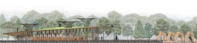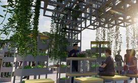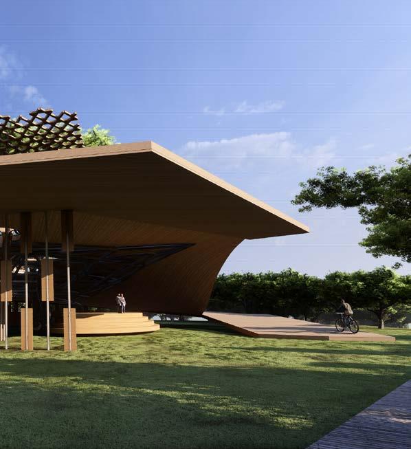 This is designed for the public to gather around, rest, eat or entertain. It consists of seating areas and a green roof that will be filled with fruits and plants that are easy to grow and maintain.