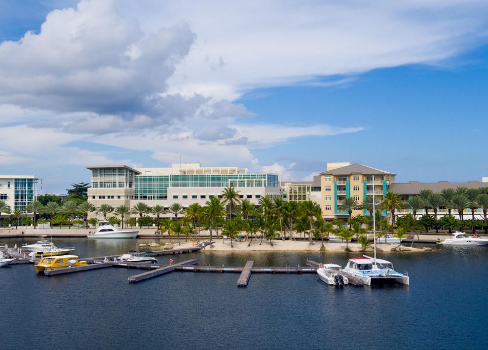 Consistent with its New Urbanism design philosophy of “live, work, play”, Camana Bay underscores the importance of a high-quality work and lifestyle environment. Tenants are awarded inspiring views, beautiful outdoor spaces, diversity in shopping, dining and entertainment, sports fields, a harbour, car parks, a helipad, a fitness centre, nightly entertainment and on-site medical services.