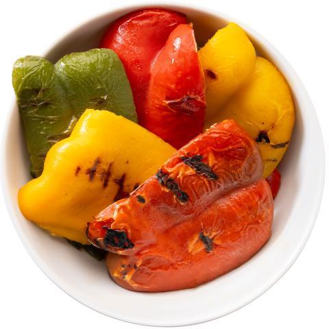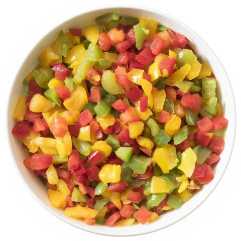 gele paprkablokjes, groene paprkablokjes, rode paprkablokjes