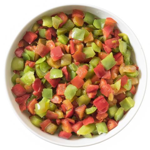 groene paprikablokjes, rode paprikab okjes, ge e paprikablokes