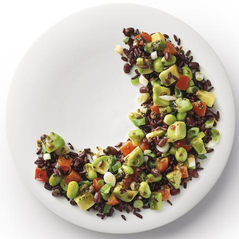 alfarfon, feiões pe ados, arroz de brócolo, ervlhas muito finas, espinafre, azeite, cebolnha, mostarda, xarope de agave, vinagre de vinho branco, sa , pmenta