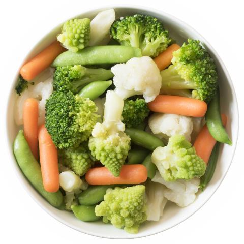 pedaços de couve flor, ervlhas, cenoura, feiões verdes cortados