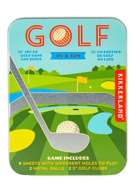 Golf In A Tin, £13 from Kikkerland - Retro inspired golf game. Includes: 2 clubs and balls, 9 holes