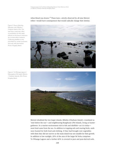 when blood was drawn.12 These laws—strictly observed by all nine Moriori tribes—would have consequences that would radically change their destiny. Figure 5. Paua collecting, Manukau reef, Rēkohu / Chatham Island, 2016. This reef has a customary rāhui or prohibition (in this case) placed on the area or resource as a conservation measure. Collecting shellfish is only permitted for certain purposes, and only with permission. Photo: Kingsley Baird.