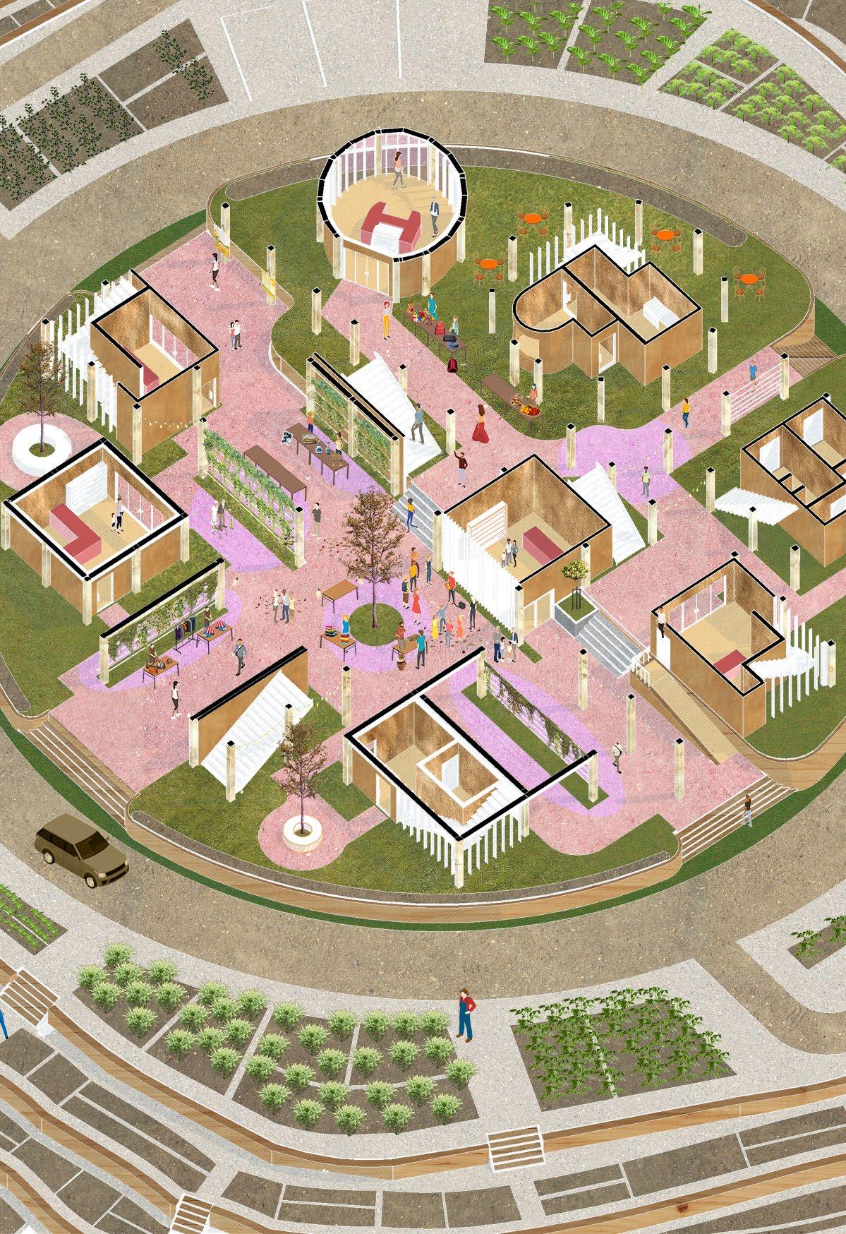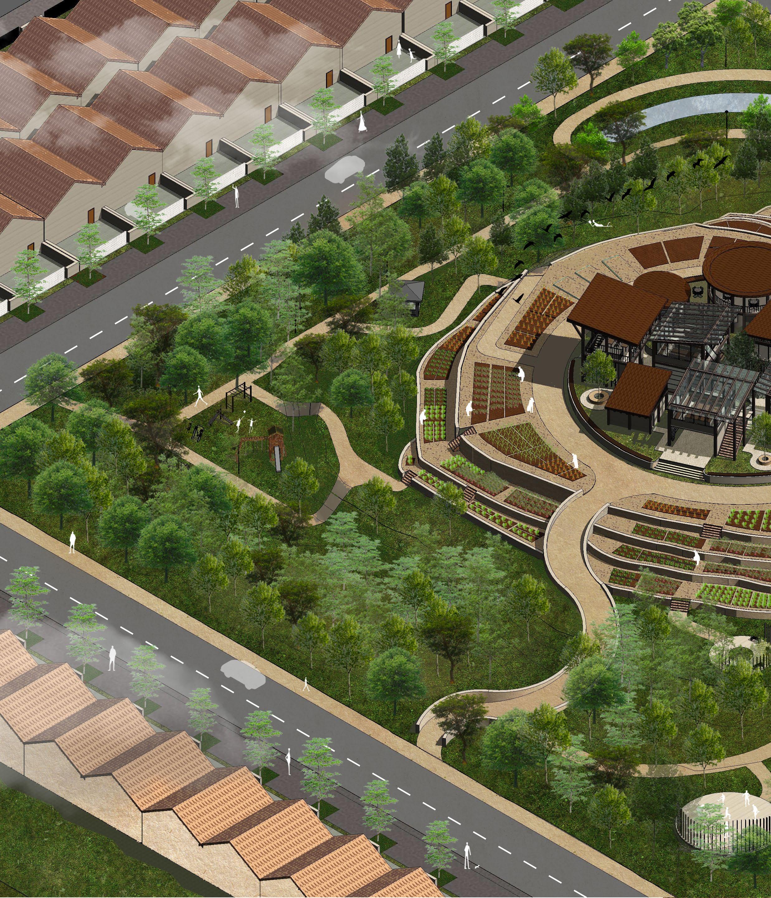 The organization of spaces has drastically changed over the past ten decades, from a primitive settlement to a metropolis, the reason for this is to accommodate the exponential growth of a population. From a loose, unorganized and unplanned distribution of spaces known as a primitive village to a more structured and functional city settlement organization. Due to this, people has lost touch of what its like to explore and immerse themselves into a loose setting. The main design idea is to introduce a loose organization of space in the rigid usj2 town. To design a place where users are not confined by the rigid road structures whereas they are led by their curiosity to explore and seek the spaces in between spaces. To design a personal village where the people can step away from the usual structured days of their life to a more loose, relaxed kebun komuniti.