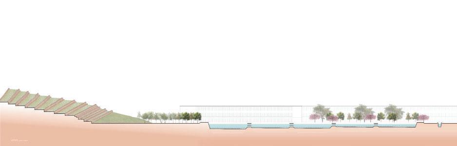 The project proposal is designed to embed the culture within the community and the emphasis on its agrarian society. First, we would open the duct to become a canal and create sequential filters allowing the filtered water to be used for crops. Second, we would appropriate farming in relation to its terrain such as rice terrace farming on the surrounding mountainside to create a protective barrier against mudslides and flooding. Third we would create centers where farmers can sell their products and surround the market centers with affordable housing for immigrants seeking asylum.