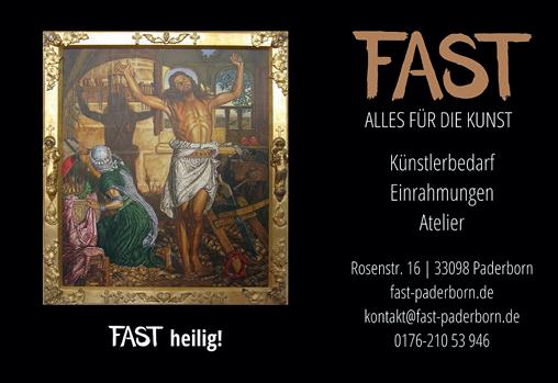 wertigen Materialien und Werkzeugen für verschiedene künstlerische Techniken sowie entsprechendes Zubehör. Abgerundet wird unser Angebot durch Drucke, Fotos und Postkarten verschiedener Künstler:innen. Unsere Gutscheine gelten für alle unsere Produkte und Dienstleistungen. Weitere Infos unter fast-paderborn.de
