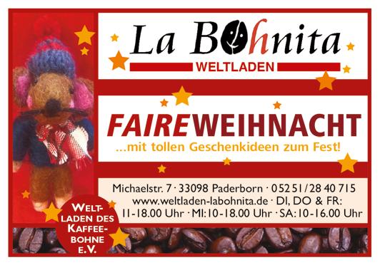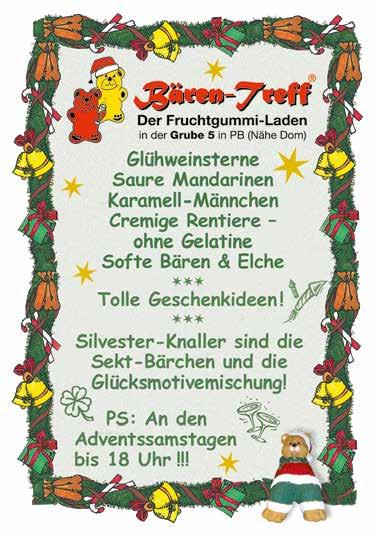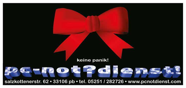 Bonifatius Buchhandlung Paderborn – Zentrum (0 52 51) 153 142 www.bonifatiusbuchhandlung.de Buchhandlung Linnemann Südring-Center (0 52 51) 66 321 www.linnemannbuecher.de Lass den Klick in deiner Stadt! online bestellen | regional kaufen Geschenke für jeden Geldbeutel! per Fahrrad per Auto per Post Weihnachten ist, was wir daraus machen…