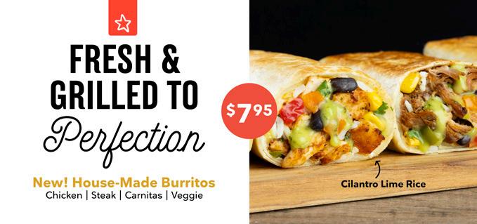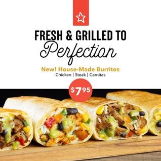 Fresh & Grilled to Perfection: Grilled House-Made Burritos $7.95