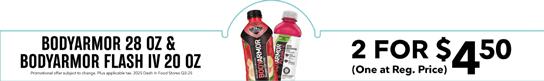 Body Armor 28oz & Flash IV 20oz 2 for $4.50