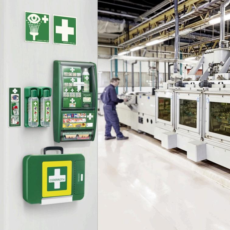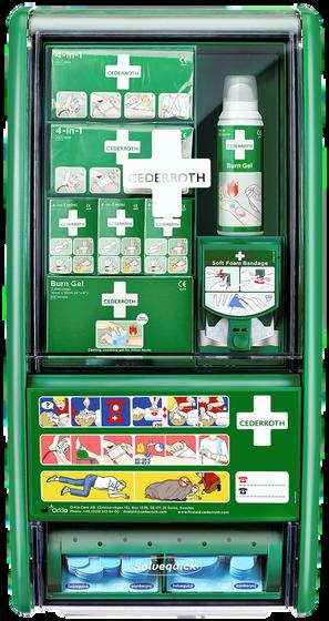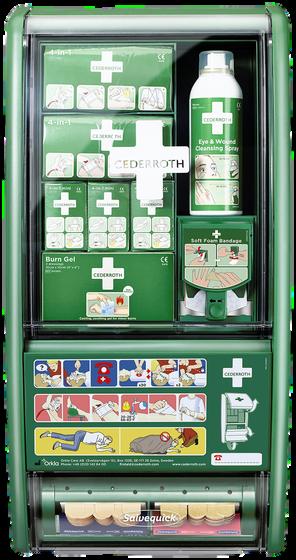 Cederroth First Aid Station inneholder produkter for å håndtere flere typer skader og kan også enkelt tilpasses ulike omsorgsbehov.