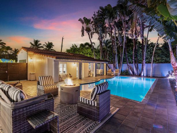 This turnkey Spanish Mediterranean with guest house has been completely updated, with no expense spared. Enter the bright and airy living room of main house, which offers 3BRs and 2BAs. Finished with new roof, electric, plumbing, AC + ducts, impact windows/doors, baths & laundry room Full 1BR Guest cottage & additional office/studio have been updated with new roof, floors, lighting, bath and more Epic backyard oasis enjoys a heated pool, finished with spacious screen porch, new decking, lighting, eye-catching landscaping, fountain & mosquito mist system. Remote blinds & Cali closets throughout. Option for fully furnished available