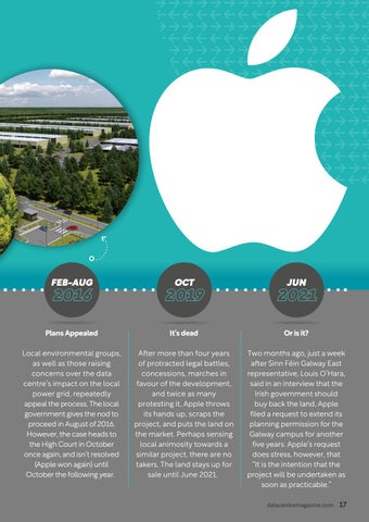 Two months ago, just a week after Sinn Féin Galway East representative, Louis O’Hara, said in an interview that the Irish government should buy back the land, Apple filed a request to extend its planning permission for the Galway campus for another five years. Apple’s request does stress, however, that “It is the intention that the project will be undertaken as soon as practicable.” datacentremagazine.com