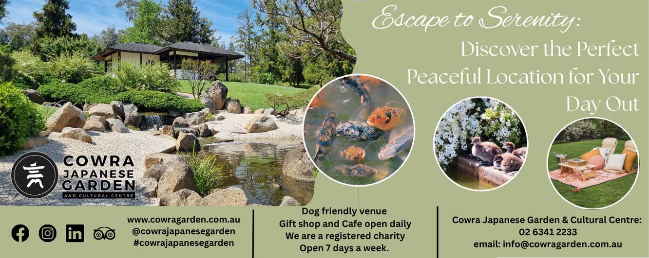 Cowra is a charming rural town, known for its rich history and beautiful landscapes. Renowned for the Cowra Breakout (1944), when Japanese prisoners of war staged a mass escape, this event is commemorated at the Cowra POW Camp site annually. The town also boasts stunning Japanese Gardens, symbolising peace and reconciliation. Cowra is part of a thriving wine region. Visitors enjoy its warm hospitality, historic sites, and annual events like the Koyo Matsuri Festival celebrating the colourful autumn leaves. A gem in the Central West!