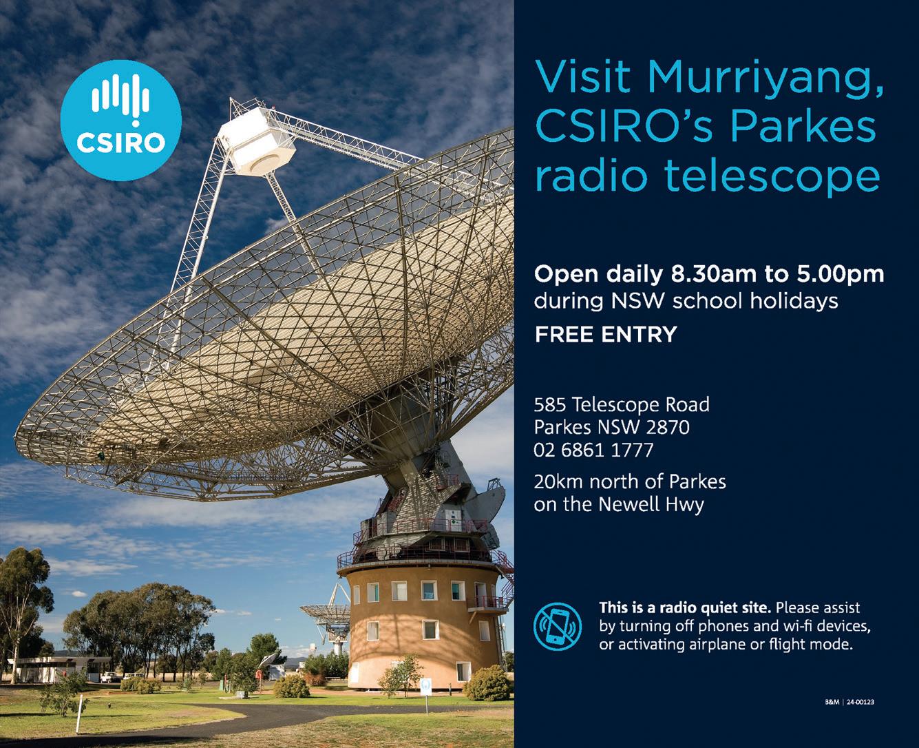 Whether you're travelling with your family, school or a tourist group, CSIRO’s Parkes Observatory Visitors Centre, is a great place to visit. Home to the famous Murriyang, Parkes radio telescope, the centre located on Wiradjuri Country features a 3D theatre, souvenirs, picnic area and space themed playground. 585 Telescope Road, Parkes parkes.atnf.csiro.au