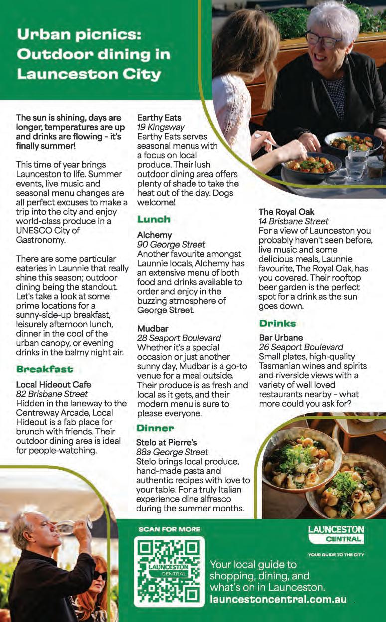 Hobart comes alive in summer, basking in long, sun-drenched days and a vibrant, easy-going atmosphere. Set against the dramatic backdrop of Kunanyi/ Mount Wellington and fringed by the sparkling waters of the River Derwent, Tasmania’s capital offers the perfect blend of natural beauty, colonial heritage, and contemporary flair. Sip crisp, local wines and devour fresh seafoods in buzzing waterfront bars, stroll the iconic Salamanca Market brimming with artisan treasures, or wander historic Battery Point’s winding lanes. With average temperatures hovering around a comfortable 21°C, outdoor adventures abound—from kayaking and mountain biking to exploring nearby beaches. Summer in Hobart is also festival season, and the Taste of Summer invites you to savour the city’s creative and culinary delights. SEE MAP BACK COVER