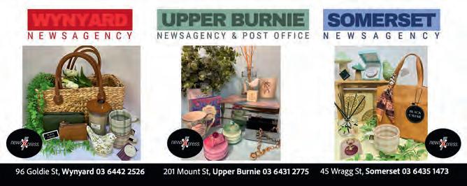 Call in and chat with the friendly staff at these independently owned and operated stores. They stock a vast range of magazines, newspapers, books, stationery, and greeting cards, along with an assortment of gifts, homewares, and even Darrell Lea chocolates — perfect to celebrate buying the winning lotto ticket from them! Upper Burnie, 201 Mount St, Upper Burnie fb upperburnienews Somerset, 45 Wragg St, Somerset fb somersetnewsandlotto