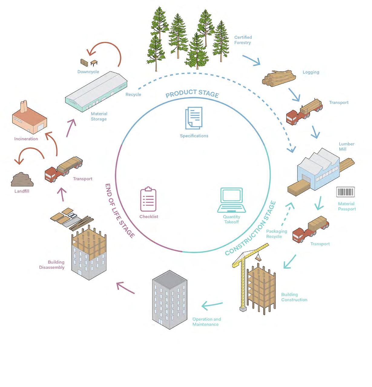 Both the low-embodied carbon and carbon sequestration potential are significant drivers behind the growing interest in Mass Timber. To understand the true impact of its use, a comprehensive Whole Building LCA is essential. Encompassing all stages of life, along with pertinent material information such as a material passport, an LCA describes defined characteristics of material and provides value for recovery and reuse. Prolonging material lifespans plays a pivotal role in advancing our transition from a linear to a circular economy.