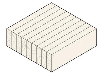 Composed of wood laminations (or “lams”) bonded together with durable, moisture-resistant adhesives. The laminations are jointed end to end, allowing for long spans. The grains of all laminations run parallel with the length of the wood member to improve its strength.