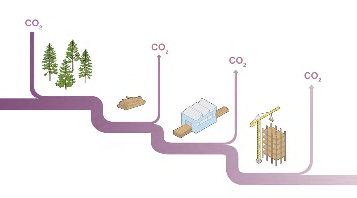 - Material Origin: Certified forestry plays a large role in carbon sequestration. Harvesting large number of trees can potentially reduce forest biomass stocks if not managed properly. We should be mindful that the potential increase in demand for timber as building materials can intensify deforestation and illegal logging, and only specify Mass Timber products that come from sustainably managed forestry.