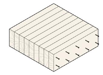 Created with dimensional lumber stacked together on its edge or cross laminated, friction-fit together with hardwood dowels. The friction-fit is achieved by the differing moisture content of the wood panels and the dowels. Typical structural properties are similar to NLT.