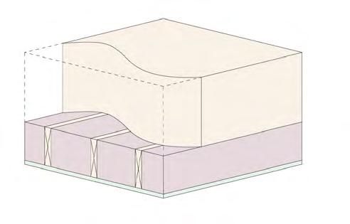 Composed of a thicker layer of concrete on the top side and a Mass Timber panel on the bottom side. The concrete acts as a compression element while the timber acts as the tension element, giving flexural stiffness. TCC floor systems are very efficient and can achieve high span-to-depth ratios.