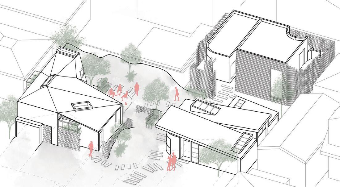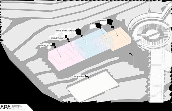 This development of three backyard ADUs in the Los Feliz area seeks to rediscover unique ways to blur the boundaries imposed by zoning regulations through the insertion of shared communal spaces shaped by gardens, facades, and edifices that can weave dwellings and inhabitants together. Each ADU fosters an anomalous approach to its shape to challenge the common concept of space. Homeowners will benefit from new spaces to contemplate nature, contemplate the scale in which they live.