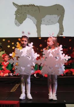 It all started with some singing. And then Santa came in. Everyone knew when to say their lines and when to act their lines. The elves were very, very, very cheeky to Santa. Santa was very annoyed. Then some angels came in. After some snowflakes were dancing in the soft snow.