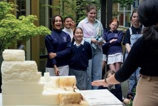 Following the service, everyone flocked to the playground to witness the muchanticipated staff versus pupils netball match. The cheering was immense as each year group rallied behind our first 7, who were ultimately successful. We then gathered for the cutting of the School Birthday cake by Mrs Elphinstone, alongside the most fervent rendition of ‘Happy Birthday’ that you will ever hear. Next came the legendary blue and yellow cupcakes, followed by a