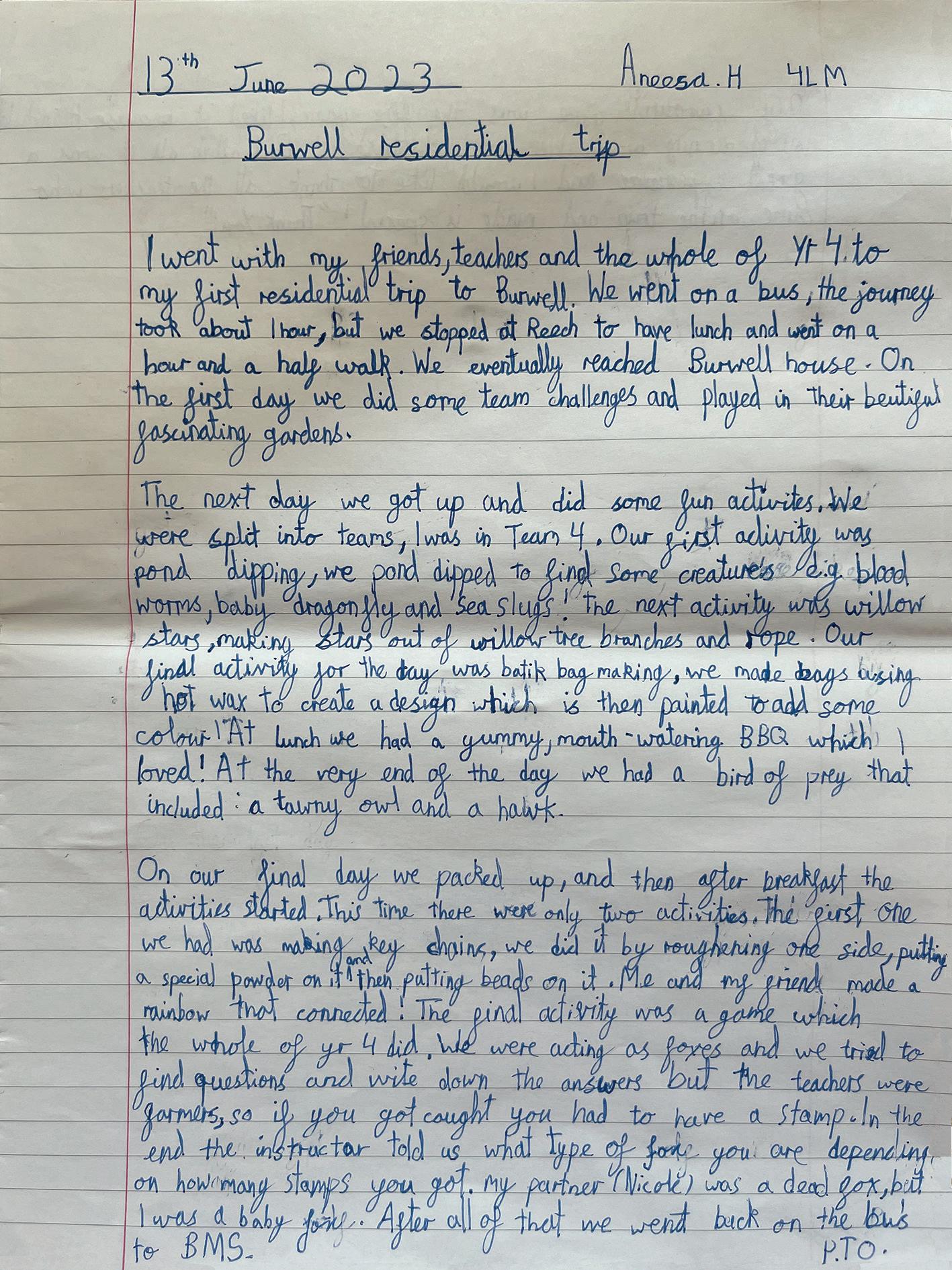 I still cannot believe I am writing this after winning the Heads Prize; it was only a distant dream in Year 3, however, 4 years later here I am. My years at BMS have shaped me into the person I am now, helping and encouraging me through the tough times, giving me lots of opportunities and experiences that I will never forget. Each year I have made new friends, building the group of supportive people I still have to this day. I have so many memories from the Junior School and, however big or small, they will always have a place in my heart.