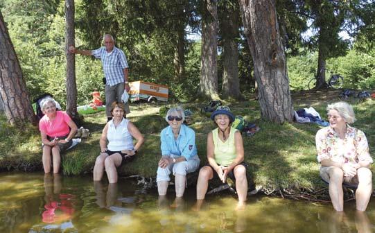 Gruppe C: Die etwas verkürzte Strecke beginnen wir im Süden Marktoberdorfs. Ab dem Kuhstallweiher ebenfalls zur Kindle-Kapelle und nach Leuterschach. Nach der Mittagspause lassen wir uns vom Bus zum Weiler Schwenden bringen. Nach einem knappen Kilometer südwärts steigen wir hinunter zur Wertach und wandern flussabwärts, bis wir eine Brücke bei Eschenau erreichen. Noch ein guter Kilometer und wir sind in Oberthingau.