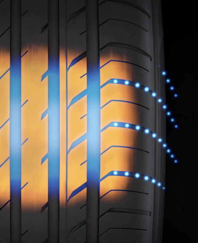 Koteloitu ulkoura tarjoaa miellyttävämmän ja hiljaisemman ajomukavuuden vähentämällä äänen vuotamista renkaan sivusta, ja vaihteleva kulutuspinnan lohkokoko on järjestetty satunnaisesti estämään ei-toivottuja toistuvia taajuuksia.