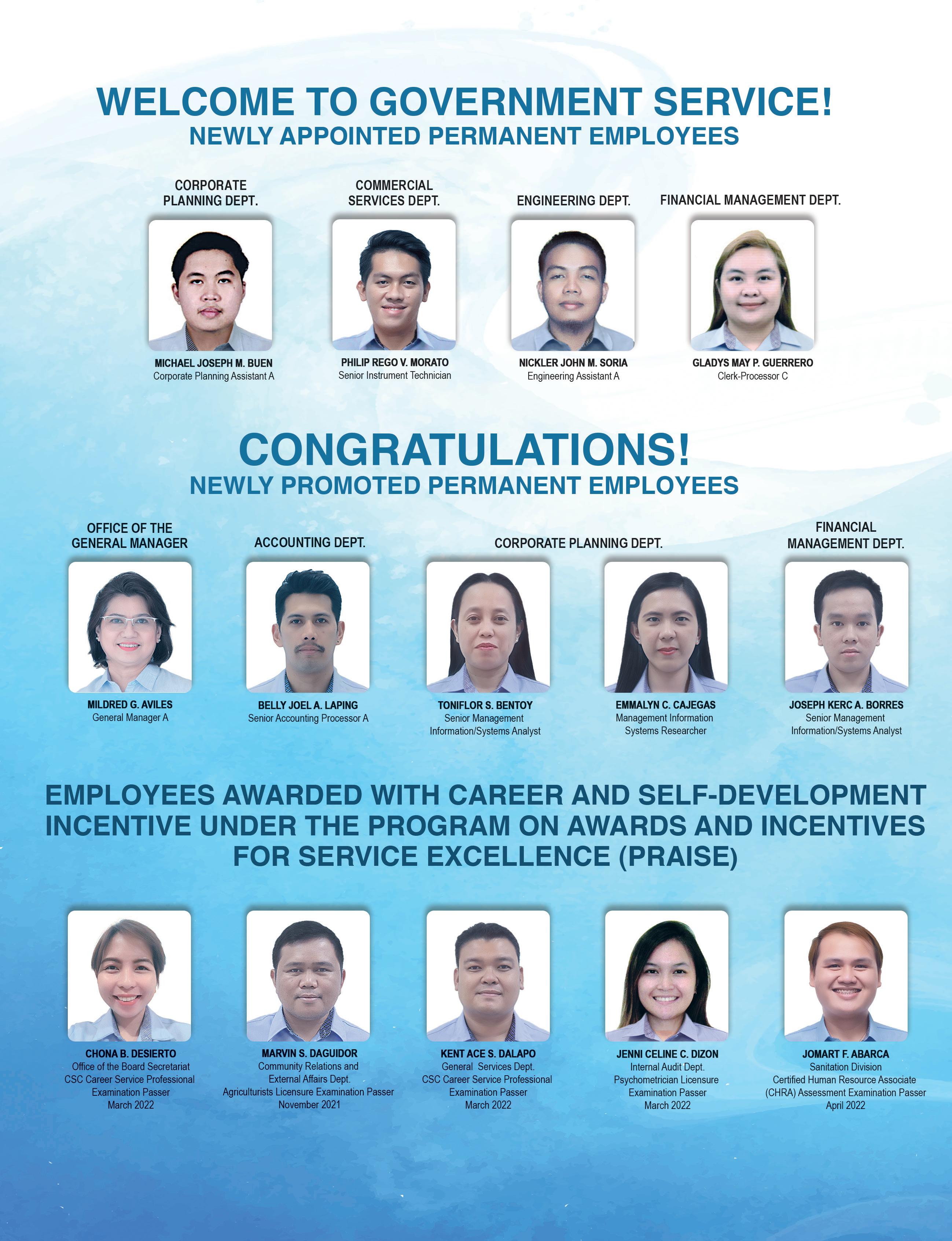 These may all sound overwhelming, but this should not derail us because the DCWD family is known to take on challenges head-on. And, for years, this fortitude has been complemented with the desire to achieve perfection. This mark of excellence has been instrumental in bringing us to where we are now.