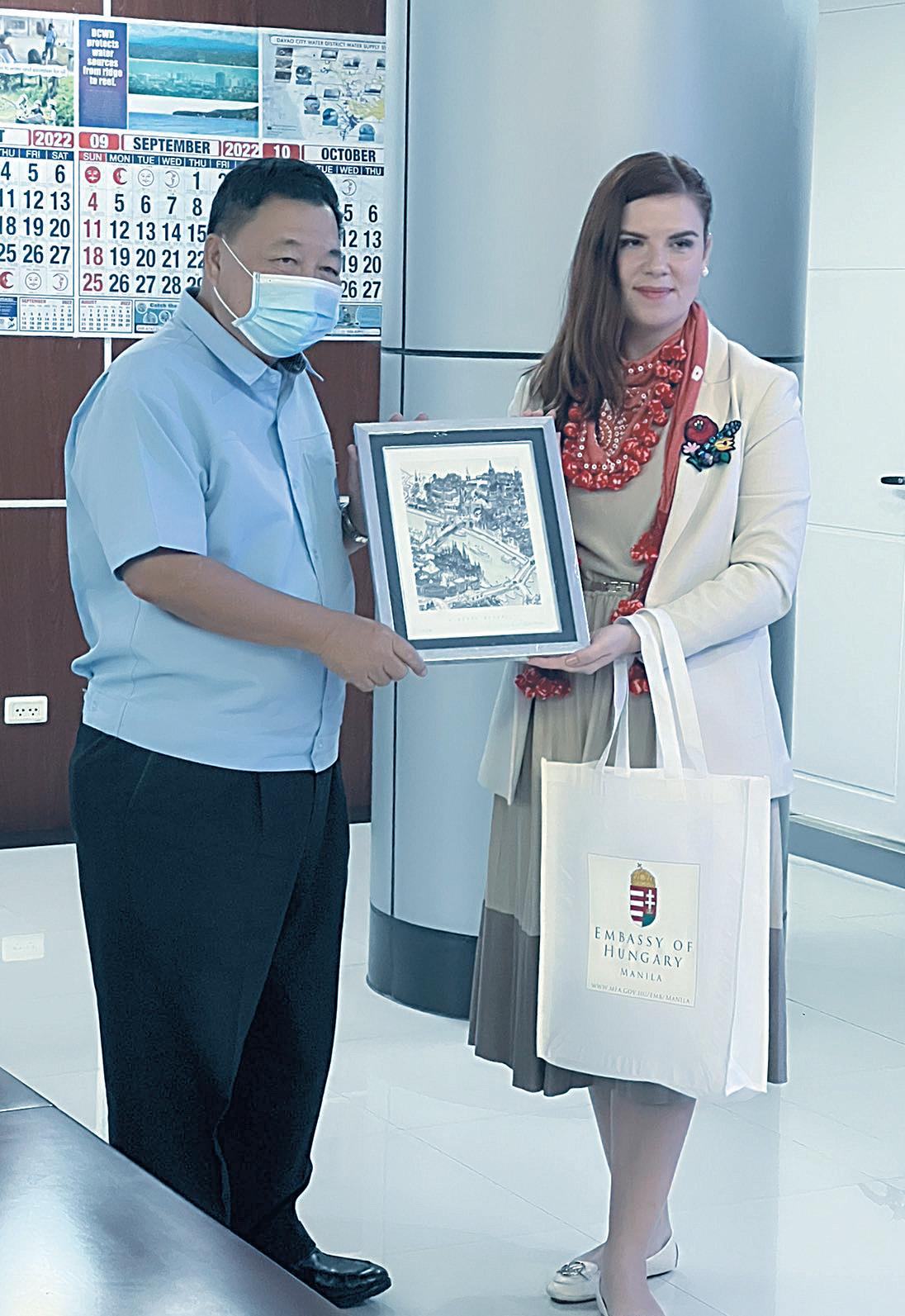 Chairperson Bangayan (L) accepts the token from Ambassador Toth.