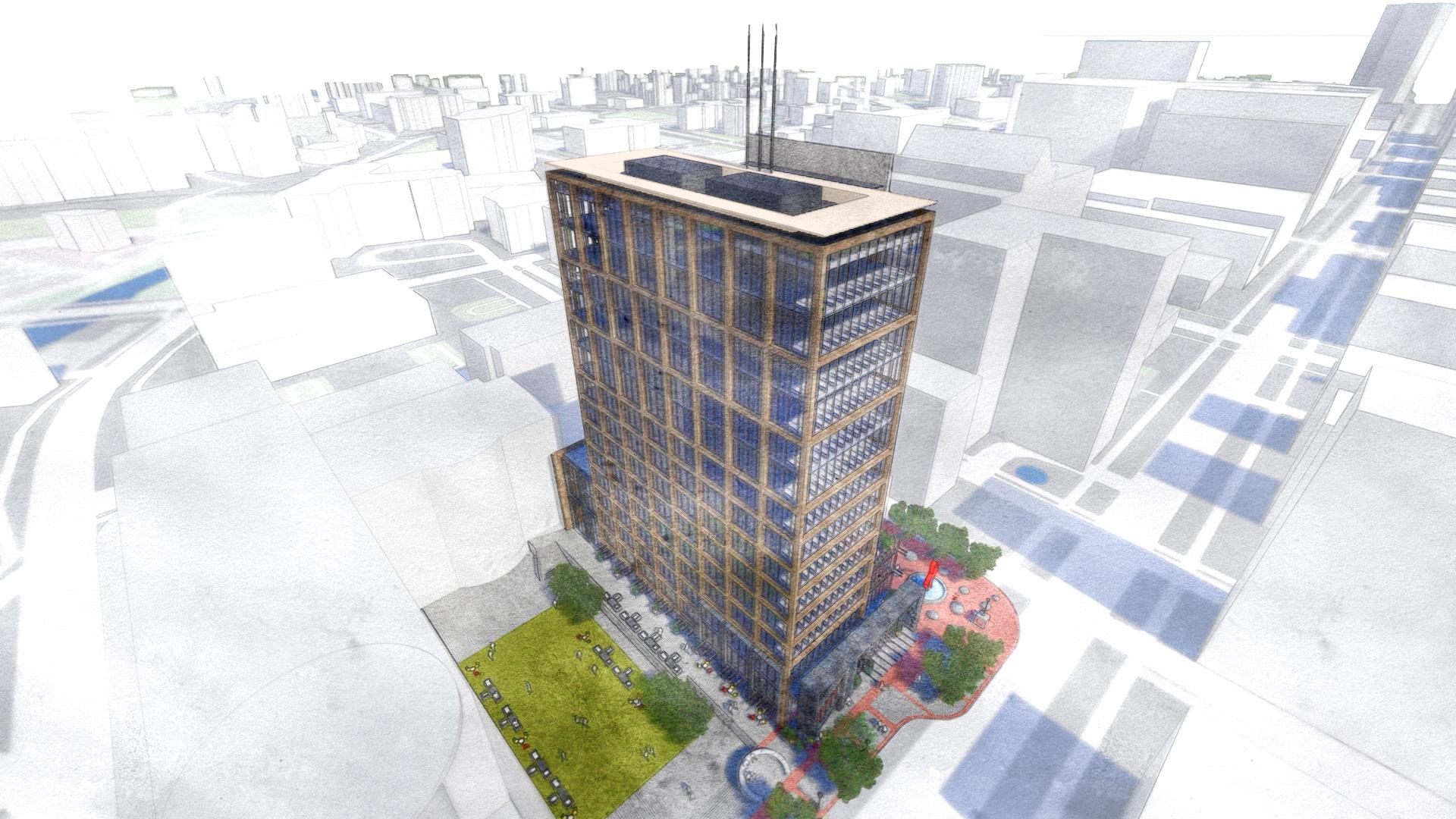 This project seeks to reinvent the civic identity of the City Hall as patinaed modern sculpture along the pedestrian facade and simple structural expression at the sky line.